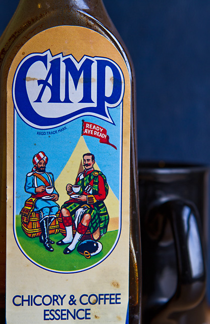 In production since 1876, Camp Coffee was reputedly originally created to ease the making of Coffee on the battlefield. This is the current label – the original one depicted the Sikh soldier delivering the drink on a tray to the Gordon Highlanders’ officer. It was almost certainly changed to avoid accusations of racism. The irony is that the orginal label may well have been true to life as the Gordon Highlanders and the Sikh Regiment within the British army shared several campaigns and it’s not inconceivable that the Officer may have had a Sikh batman – Who knows!