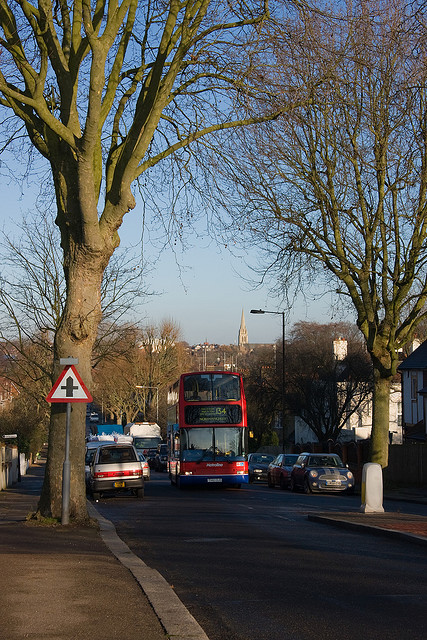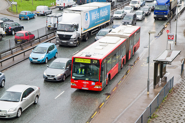 Another unusual working – Here is a Bendybus on the North Circular Road. It’s definitely off route, the 29 doesn’t go anywhere near the North Circular! So what was it doing there? London Mayor, Boris Johnson, made an election pledge to get rid of Bendybuses in London (I can think of more pressing things that he could have promised) 😦 Arriva, having won a contract to provide bus services in Malta, decided that some of its relatively new Bendies could go there. This vehicle (MA128) was one of those selected. So the conclusion is that it was on its final journey from the capital before being shipped out of the country. Off then to warmer weather and away from the rain and traffic jams on the A406 North Circular Road – which definitely are Not Unusual!