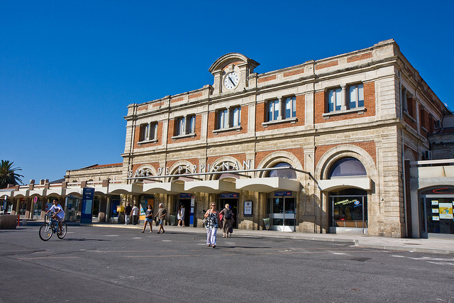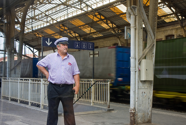 Overseeing the timely departures beneath the trainshed, Perpignan’s Chef de Gare waits for the signal to give the right-away for a local service along the coast. A day out for us to the nearby port of Collioure – will have to find another challenge for those photos!