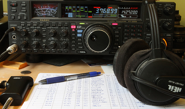 For the technically minded I will be receiving and transmitting on the shortwave Amateur Radio sections of the airwaves – probably around 3.700MHz, 7.150MHz, 14.200MHz and (if conditions permit) 18.160MHz. If you’ve got good eyesight you can probably read some of yesterday’s contacts in my logbook on the table 🙂