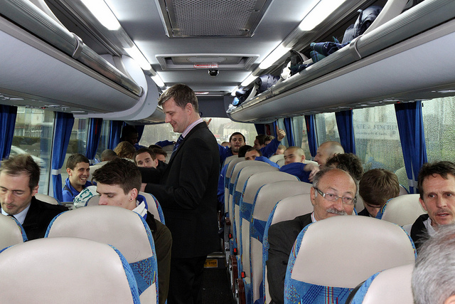 The Wingate and Finchley team and board members en-route to a cup final game – that’s our Manager standing in the aisle