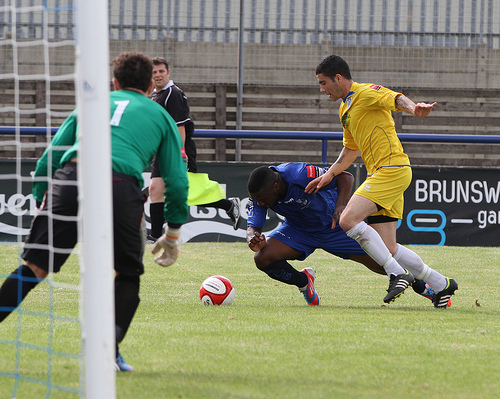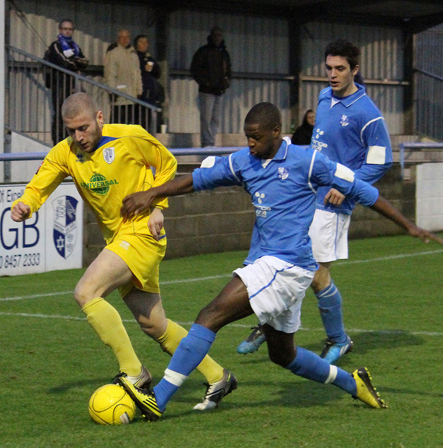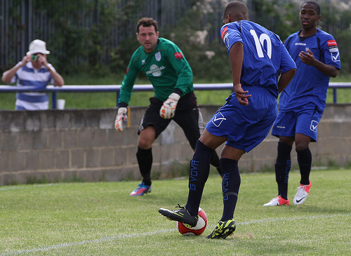 But as players go, so others come in. Jon Docker and Sam Berry have joined whilst Ajet returns from a season away in Kosovo. Now that is an issue for the cameraman – his Mum gets very upset when I don’t take a photo of him 😉 I dug this photo out of the archives from 2011’s friendly against Ware – there is Ola with Ajet defending as Murat (then a Ware player) looks to find a way into the box… Seemed a fitting way to close this post.
