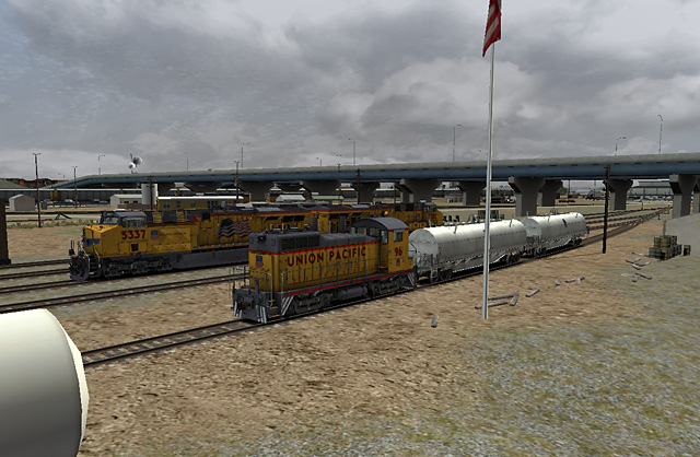Just a quick diversion from the joys of Cornwall. After Debra revealed her Husband’s association with the Union Pacific Railroad I couldn’t resist producing these screenshots from a brief shunting session at lunchtime today…