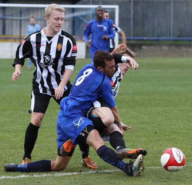 Checking the dictionary, I see that Resolved means firmly determined to do something. So here are Wingate & Finchley’s Scott Shulton and an East Thurrock player, both Resolved to win the ball…