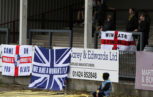 Football fans worldwide have a culture centred around their team. Quite often it involves a slightly whacky, almost gallows, sense of humour. Variations of the National Flags are created with club badges proudly imposed upon, for example, the cross of St. George…