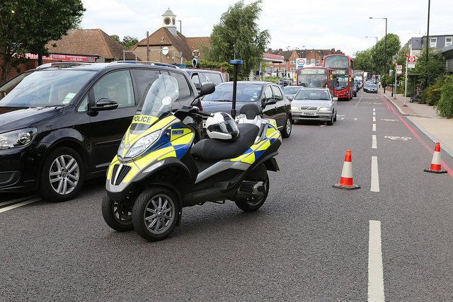 I took the opportunity to have a quick chat with a friendly Community Officer and to photograph his rather snazzy 3 wheel scooter which was boldly holding back the traffic from driving up Archway Road. Then we plodded up the hill past Highgate Station and continued down towards Archway.