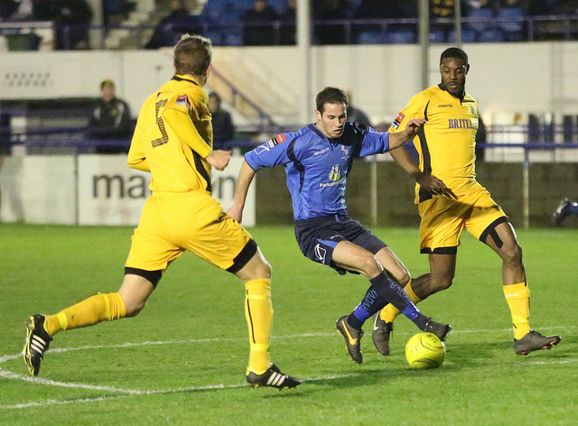 Adam Bolle – new signing surrounded by Maidstone players
