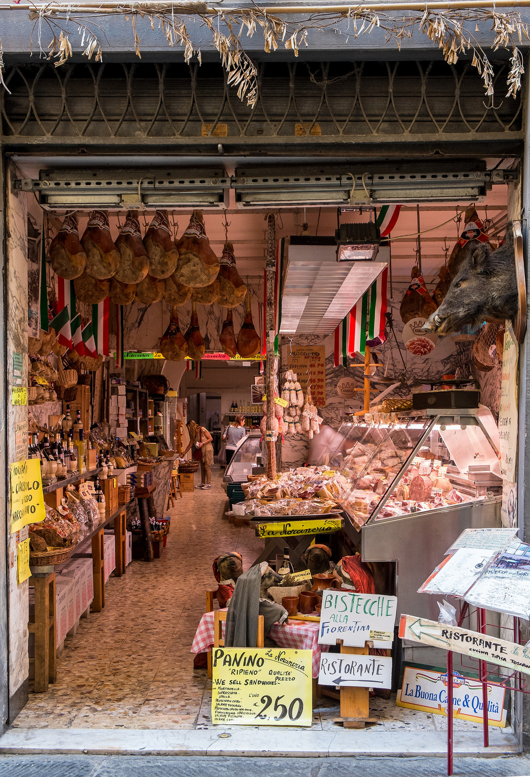 Italian Butchers have an amazing array of goods on display Philip – and some unique advertising like the 15th century piglets in the foreground 😉