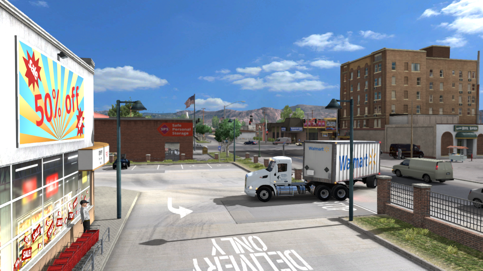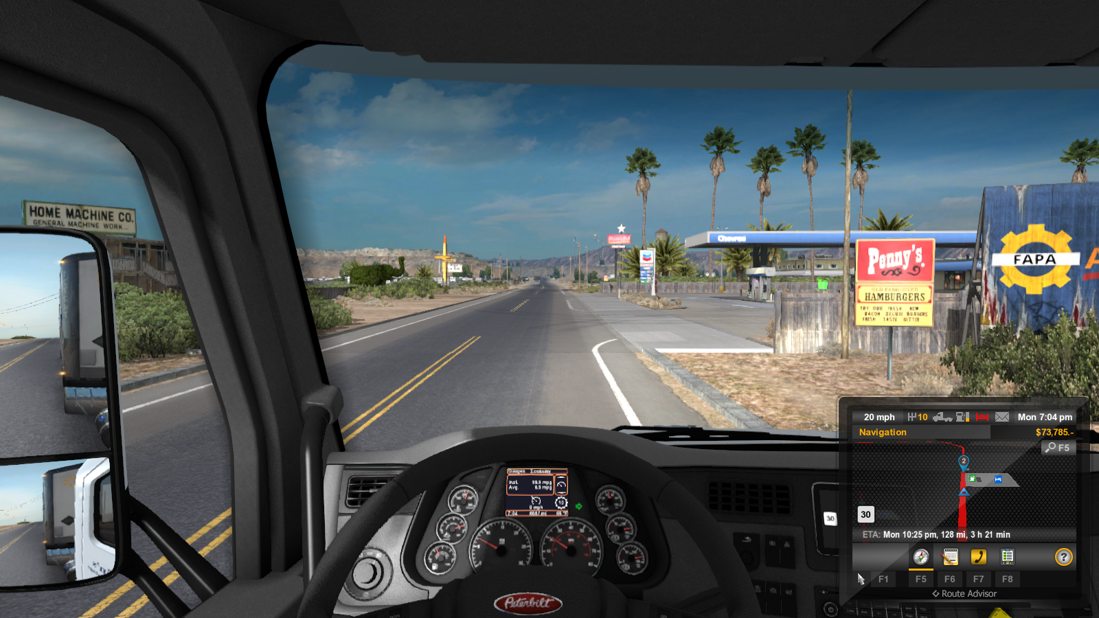 The run up to Kingman (AZ) is good freeway but even on those roads you have to watch for the AI trucks and cars (as well as the Cops). Descending off the freeway into Kingman and you’ll see a Mack ahead – that AI carved me up approaching the exit and then proceeded to block me at the lights ahead 😦