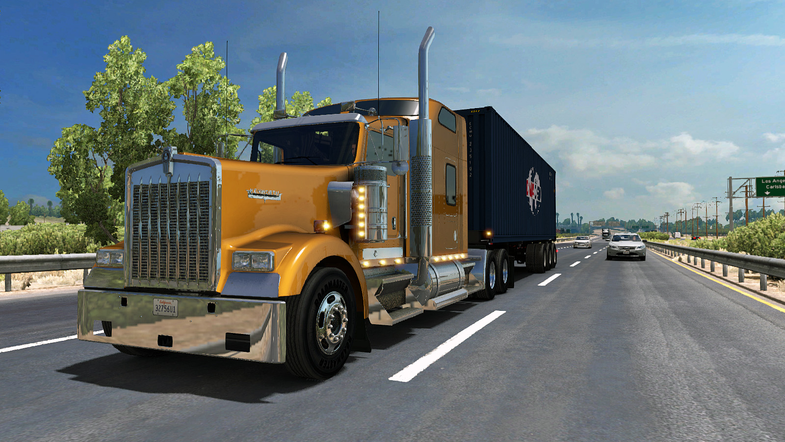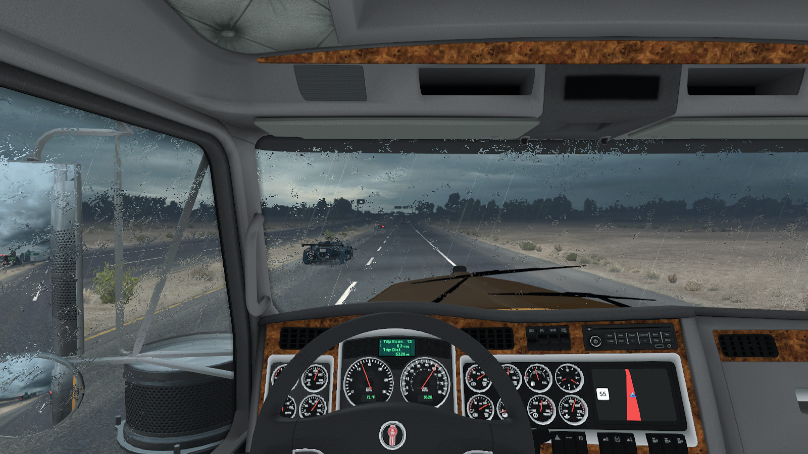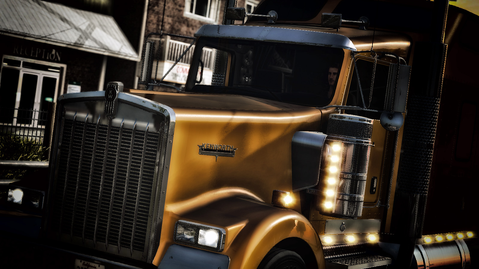 I’ve equipped the truck with the Eaton-Fuller 13 speed gearbox with retarder. A retarder is very useful when trying to slow down a heavy load with the brakes on a realistic setting so if you decide to try your hand in ATS I’d recommend that you get one! The engine is the PACCAR MX-13 485HP and makes a great noise. I’m getting around 6.3mpg with that set-up in game which is ok. I did a bit of research on the real world mpg figures of the MX-13 455HP version as fitted in my Peterbilt fleet and mid-to high 6’s and low 7mpg’s was the norm with one truck company reporting that one of their drivers was routinely getting up to 7.8mpg “But he thinks that anything over 62mph is speeding!” I’ve found that shorter runs and time spent in towns will definitely hurt your average fuel consumption – so longer trips are best whatever engine you are driving. I noted that the video diarist Squirrel has fitted his W900 Day Cab with a Cummins 605HP engine. I don’t think he worries about fuel consumption – last figure I saw was 3.7mpg though he’s probably getting more than that on longer runs (he changed the truck’s display so it show’s speed rather than trip info).