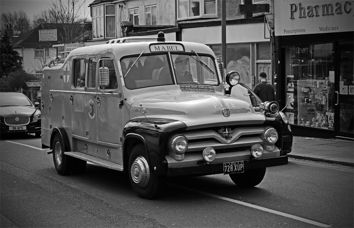 There are some semi-hidden F’s too. The first image has been processed in Silverefex to emulate Ilford FP4 Film. The second image is of a Volvo FL6 and the third is an old Ford airfield fire / rescue truck now preserved and available for function hire. All were taken in Finchley.