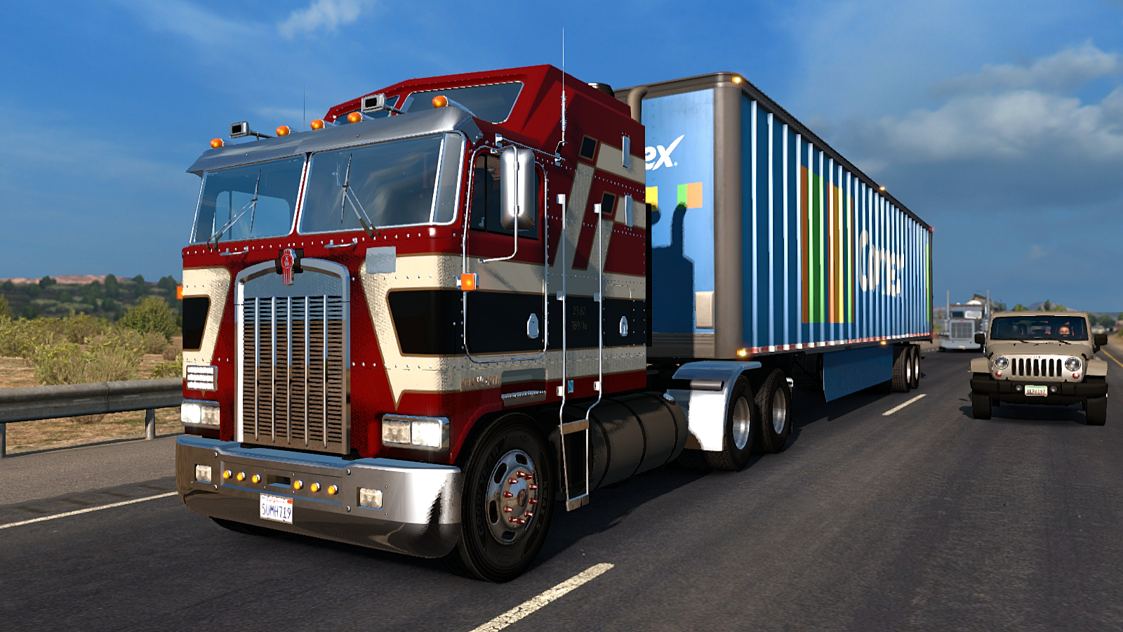 Truck simulator has been a stabilising factor during this period of stress. Firing up the engine and watching the scenery drift by whilst looking out for other vehicles doing silly things is a surprisingly engaging activity. In American Truck I have been looking to expand my fleet further with some more free mods from the internet. I’ve also upgraded the ai traffic vehicles by loading the latest versions of JazzyCat’s various mods (clearing an annoying textures issue in the process) and added in some new trailers.