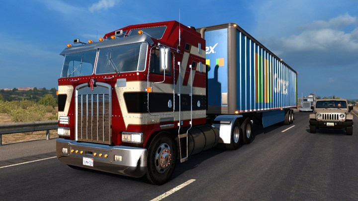 The Freightliner Cascadia has also returned and sports a dark green metallic paintjob. She has picked up the name ‘Diana’ after the Green Goddess of breakfast TV workouts in the 1980’s. This is another truck that Cyrus’ has been updating – though I see the dash lights are still not working. But she drives well and adds a modern truck to the fleet. I’ll have to do a review at some point. There were four other trucks I wanted to add to the game. The Mack Pinnacle, Freightliner Argosy, Peterbilt 387 and Peterbilt 357. I will do a post about my experience with these soon.