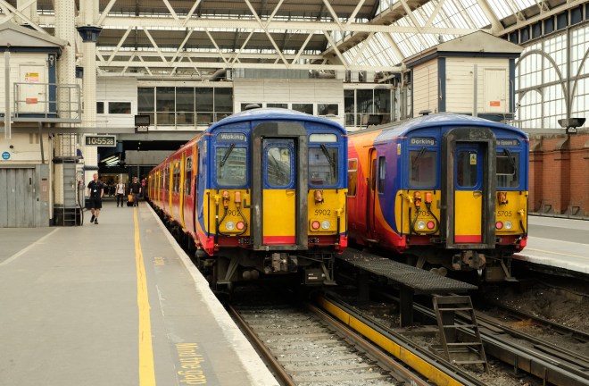 Hi Debra – Thank you 🙂 I think Southwest Trains want their commuters to be cheerful 😉 5902 was about to give me a lift to Clapham Junction – that’s her driver sauntering down the platform in his shorts.
