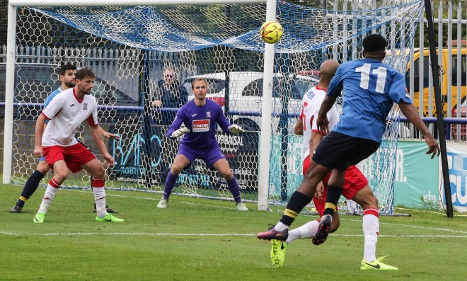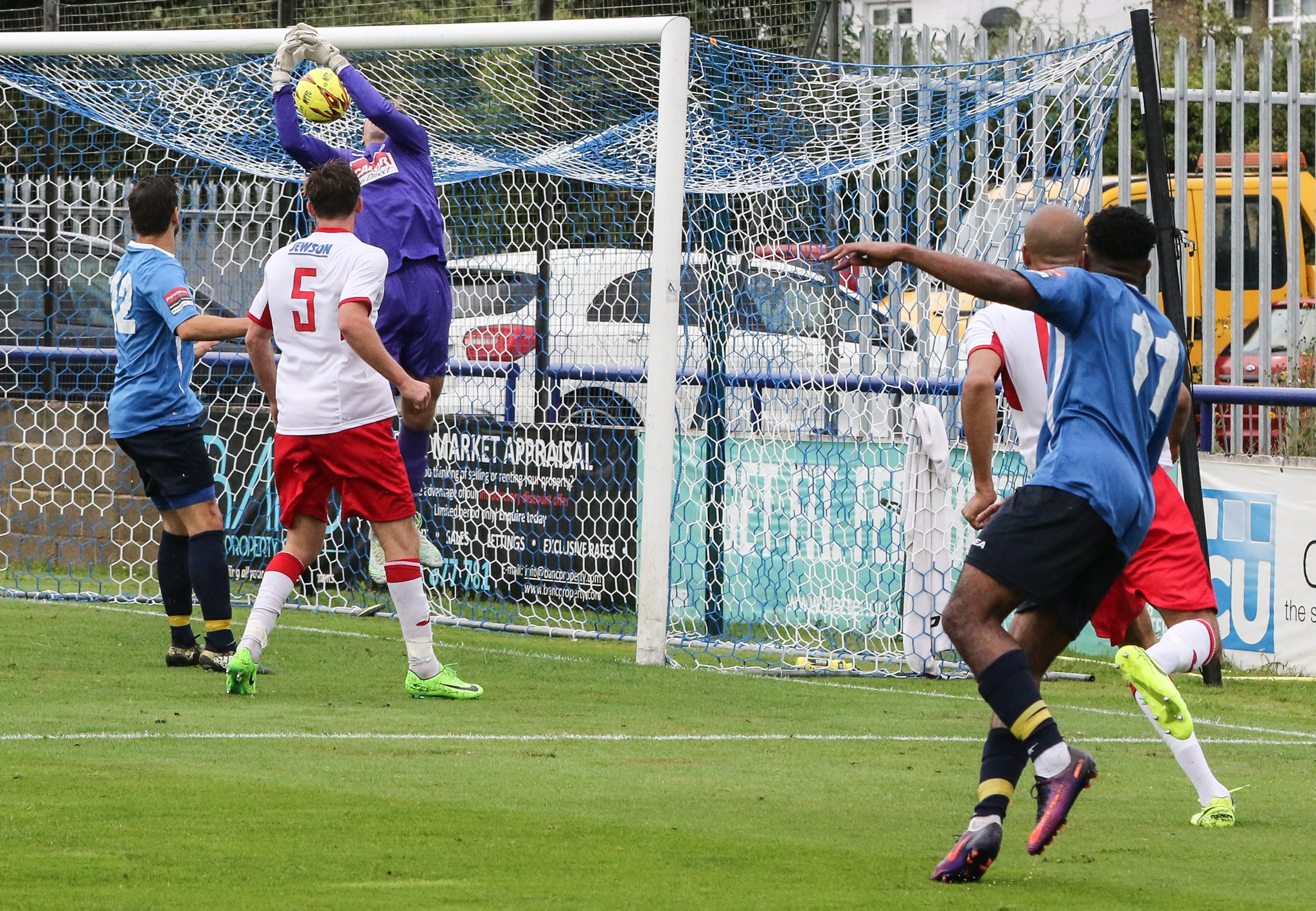 There is a Premier League keeper called Fabianski who has attracted the joke name Flappyhandski among football fans because of some perceived weakness in stopping/catching balls above head height. On Saturday in our game against Woking Reece launched a speculative shot from a tight angle. The result was a Flappyhandski moment!