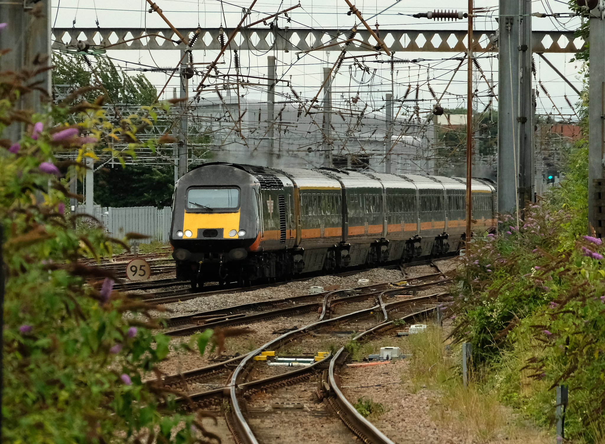Grand Central Trains 13:48 departure from King’s Cross to Sunderland accelerates past Alexandra Palace under a sky full of rain. The train is made up of 6 mk3 coaches and powered by Class 43 (HST) locomotives with 43423 leading and 43467 bringing up the rear. Originally entering service from 1975, the HST fleet continues to see service across the UK and the Class 43 still holds the record for the fastest diesel locomotive in the world at 148mph although service speed is limited to 125mph. Originally fitted with Paxman Valenta engines, most of the class were refitted with MTU engines between 2007 and 2010 as part of a life extension programme. I wonder how many more years of service remain for this amazing example of British Railways design and engineering? You can read a detailed history of the Class 43’s on Wikipedia.