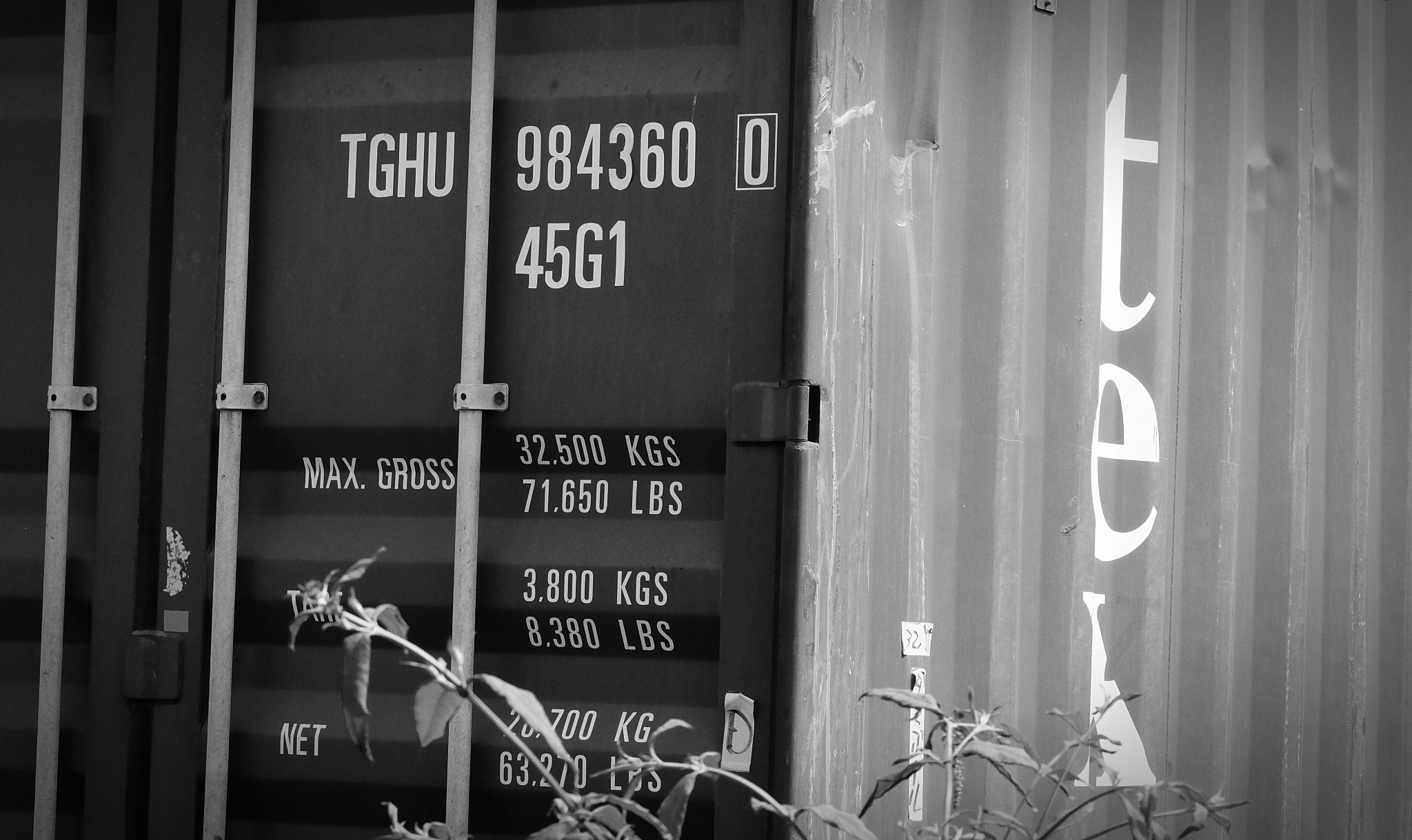 Where’s my consignment? Numbers on a shipping container passing through Acton in west London.