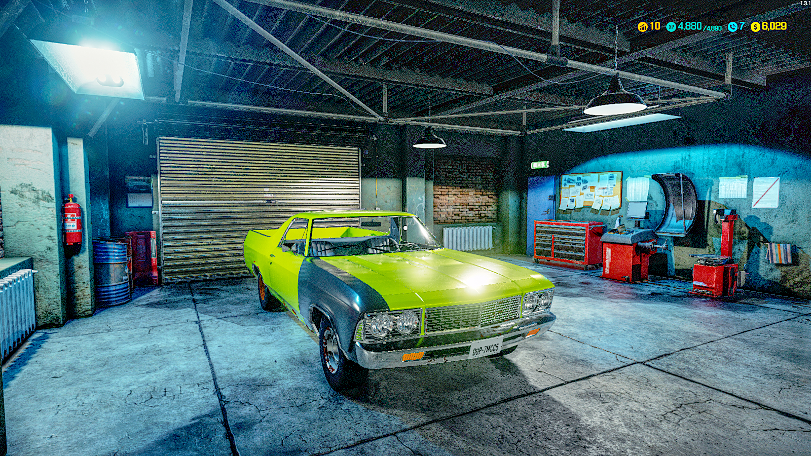 However, even though I’m only at level 10 I have unlocked sufficient levels to visit barns and buy dilapidated cars to rebuild between fixing other peoples cars. In the first available barn I found a Chevy Camaro which I purchased – I have memories of these racing at Brands Hatch! That is a long term rebuild project for me. Then, in another barn that appeared a few jobs later I found a 1966 Chevrolet El Camino Pick-Up – an ideal first rebuild. She was a basket case with missing parts but I took a break from fixing other peoples cars this afternoon and totally rebuilt the engine. Now she starts and I’ve run her around the test track 🙂 I’ll have to sort out the suspension and wheels soon and then repaint her – when I get a paint shop! But here’s how she looks currently…