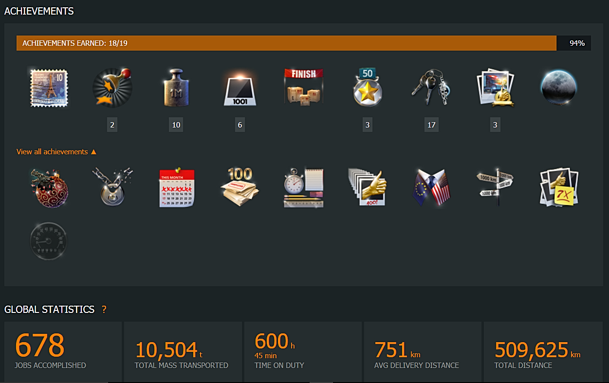 The other reason for connecting your Profile to World of Trucks is their own Achievements which add more targets to aim for…