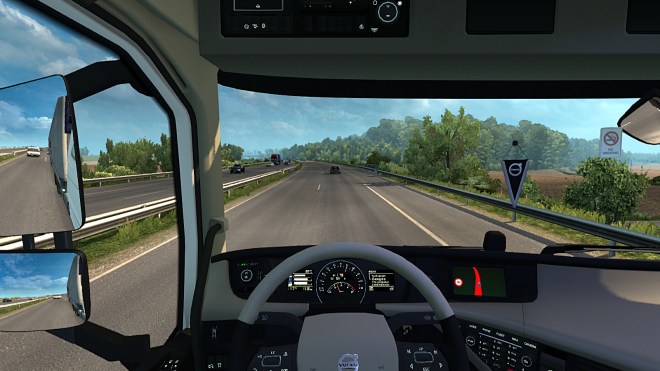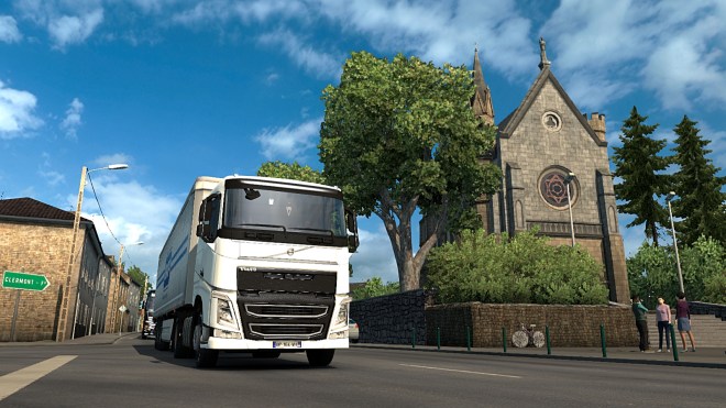 So that sums up World of Trucks, your profile and what connecting to it adds to the game. I’ll conclude with a couple of screenshots with our Volvo passing La Chapelle Notre Dame du Puy in Bourganeuf on the D941…