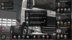 The external jobs supplied by World of Trucks are different. Firstly, the map not only knows where you are but only offers you jobs in the local area. In most cases this means the specific city you are in although if two cities are very close – Luxembourg and Metz come to mind – then you will see jobs from both. You’ll notice that the variety of trailers is different in my screen shots – that’s because I’m running a couple of trailer mods and not all of these are picked up by WOT for its jobs. Now for the key differences in WOT jobs. The time shown is Real World Time. If the job says 16 hours then you have 16 hours to complete it. Unlike the Freight Market jobs, the clock never stops so if you close the game and go away to do something else your time left to complete the job continues reducing. Normally this is not an issue but you need to understand how long it takes to drive a given distance in the game in real time. A guide figure assuming you’re obeying the speed limits is that 500km will take around 45 minutes to drive. So if you were to pick a job from Limoges to Le Mans that had 38mins left on it you will very likely be late and, as mentioned before, that will incur a massive fine! If you’ve clicked on a job but not hit the take job button you will see the route highlighted and by going to the map screen you can see the route distance which will allow you to estimate whether the time allowed is viable 🙂