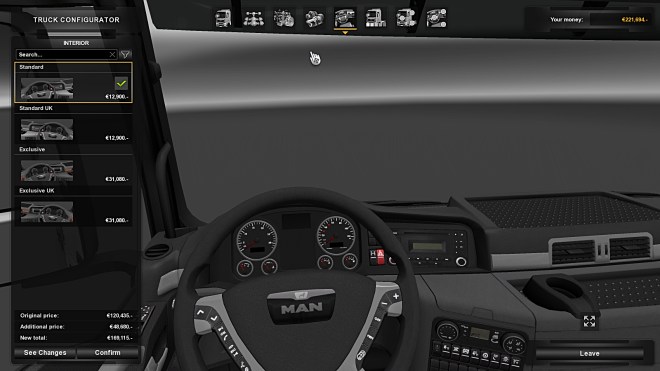…the one for the gearboxes is similar and that’s where you get to choose the differential ratios that govern best speed in top gear. Then you get to move on to the interior where the cost difference between the standard and the exclusive is horrendous in MAN trucks…