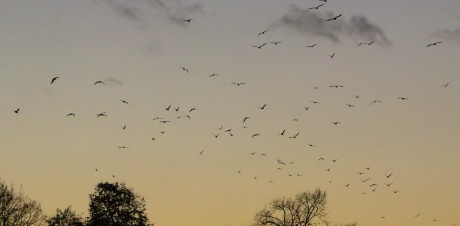 Nightfall 2 – Gulls flying into the dusk over Imber Court…