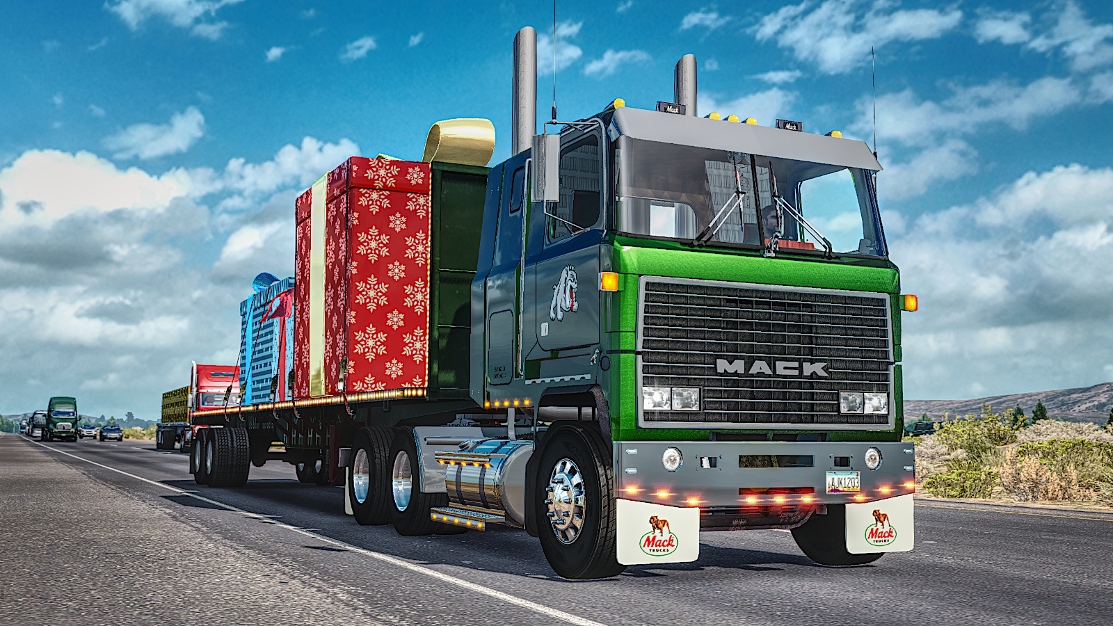 …Canis Majoris rides again! I now have my two favourite Cab-Overs in the US in the shape of the Freightliner FLB and this lovely Mack so I’m very happy. In Euro Truck Sim I’m driving the venerable Scania 113 and the Renault Magnum. Between the 4 vehicles mentioned we’ve cleared off this year’s Christmas Delivery Challenge and earned our rewards. Looking forward to the next Event from the team at SCS. Looking forward to a lot of new deliveries from them too in 2018 – they sound like they’re up for it!