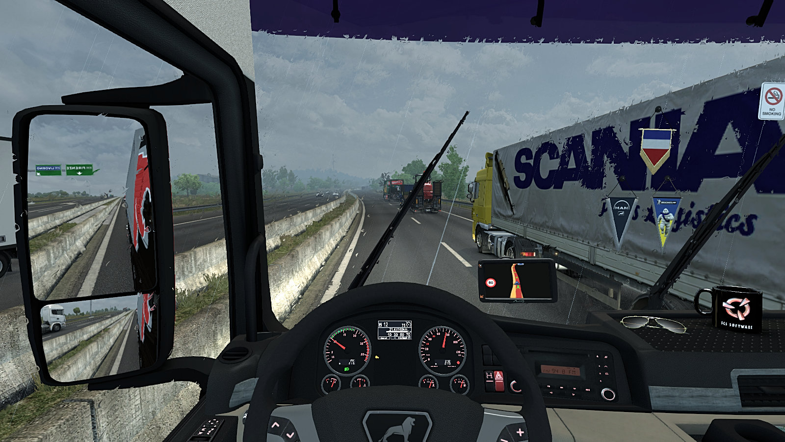 After rushing some urgently needed medical equipment across to Genève, we took a load of oil filters south through Italy to Napoli. This shot taken as we drove south between Firenze and Livorno shows the instrument layout of the MAN TGX…