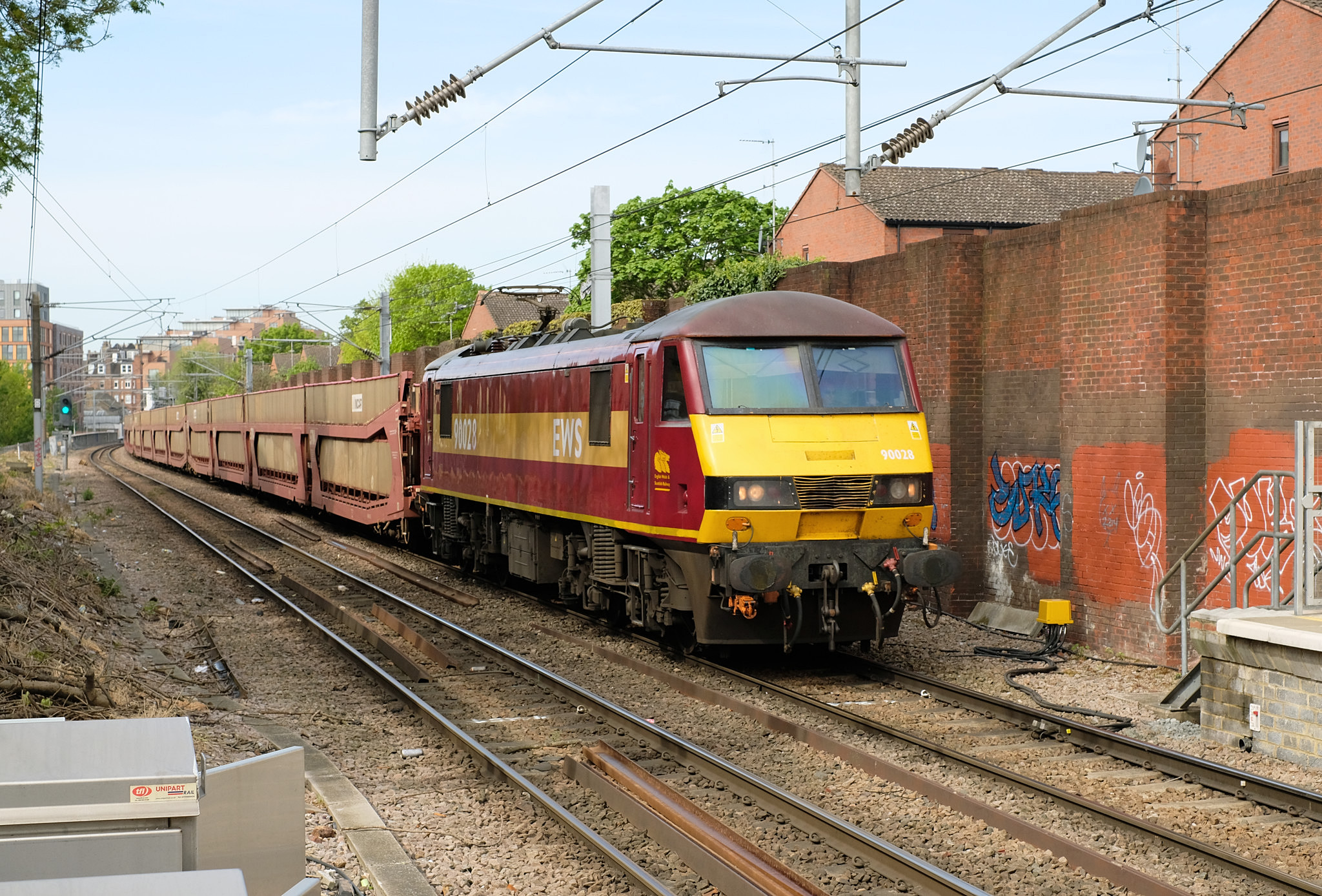 After that I was able to plan Thursday’s day out based on what I had seen. The idea was to try to get shots of 4 freight trains booked to run along the North London Line between 10:00 and 11:00. I captured 3 out of the 4 which is a great result – the other one was an ‘as required’ service and didn’t run. Here is 90028 at Finchley Road and Frognal on the daily Mossend to Dagenham empty car transports…