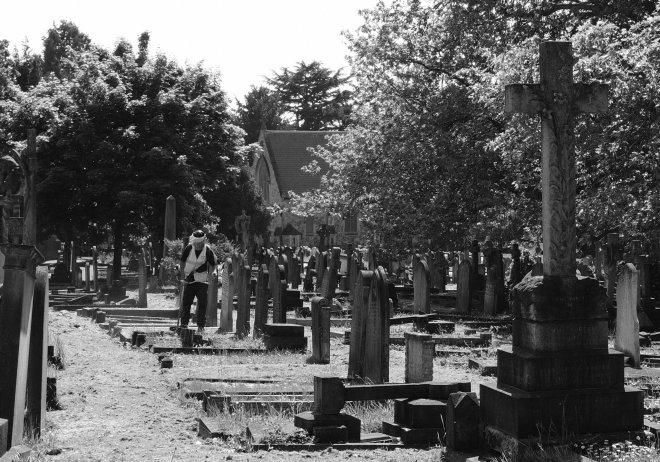This was a contrajour shot that I’ve cropped significantly to focus the viewer’s attention on the gardener amongst the tombstones…