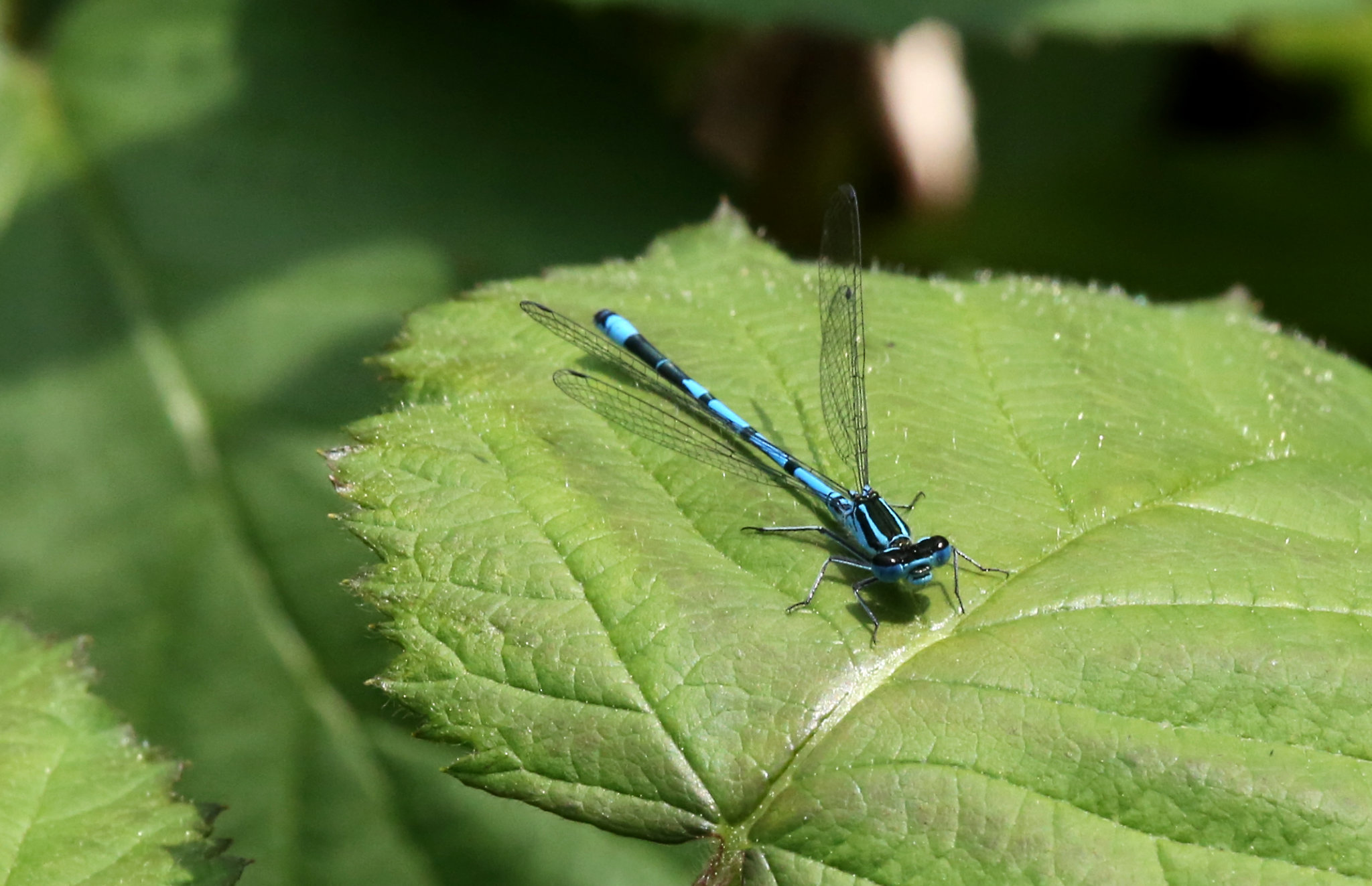 And the Azure Damselfly. These are very similar to the Common Blue and the Variable species but I’m happy I’ve correctly identified these (though Blue Damselflies can also be found at the Pasture). Here’s a front view of a Male resting on the brambles again…