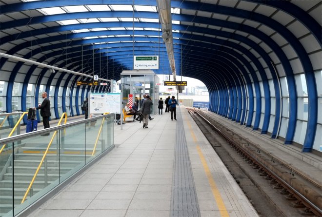 A flattened arch forms the roof of London City Airport DLR Station…