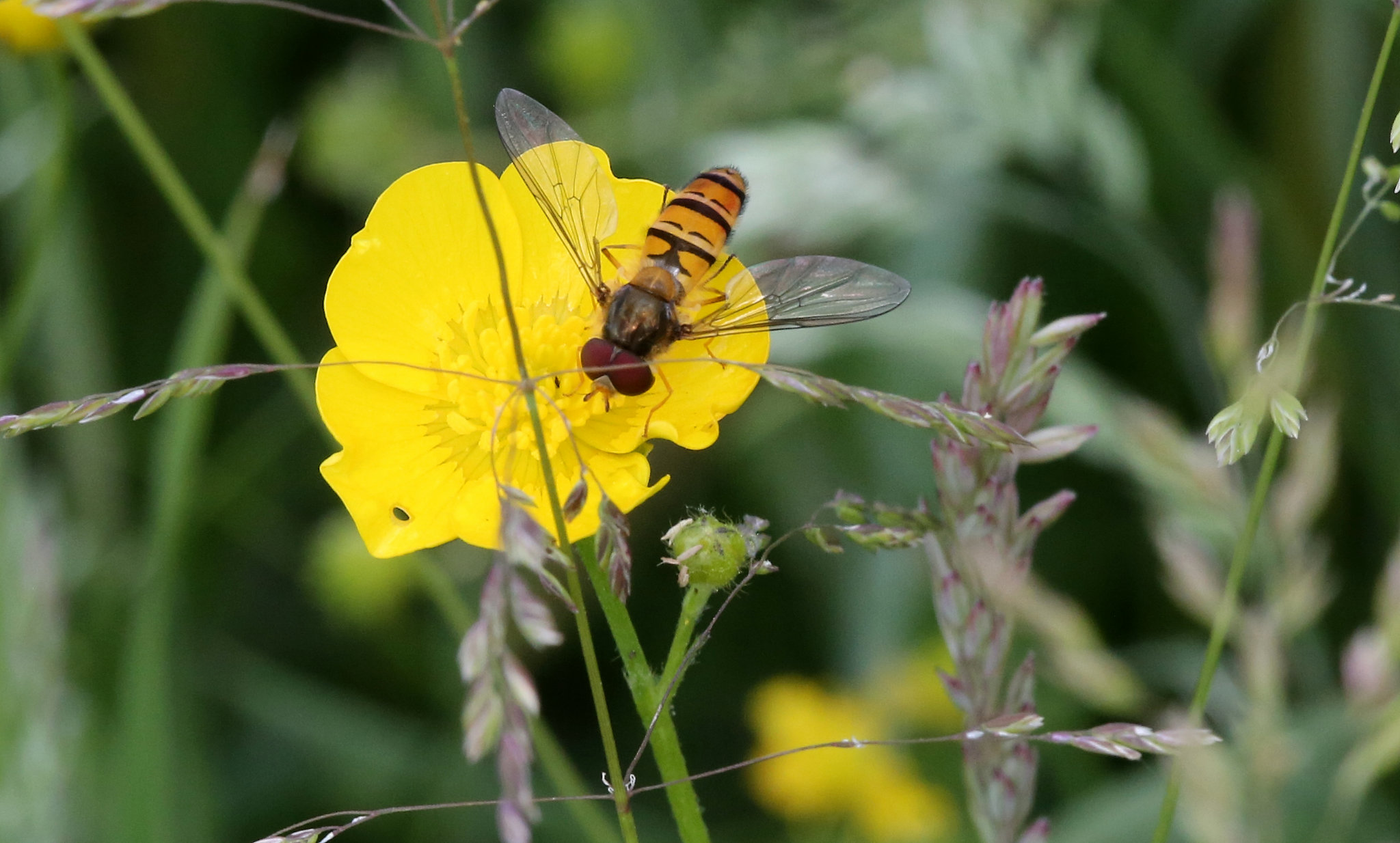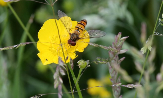 …she’s grabbing a pollen boost from a Meadow Buttercup. Her scientific name is Episyrphus balteatus but I reckon Lady Marmalade will do just fine 😉