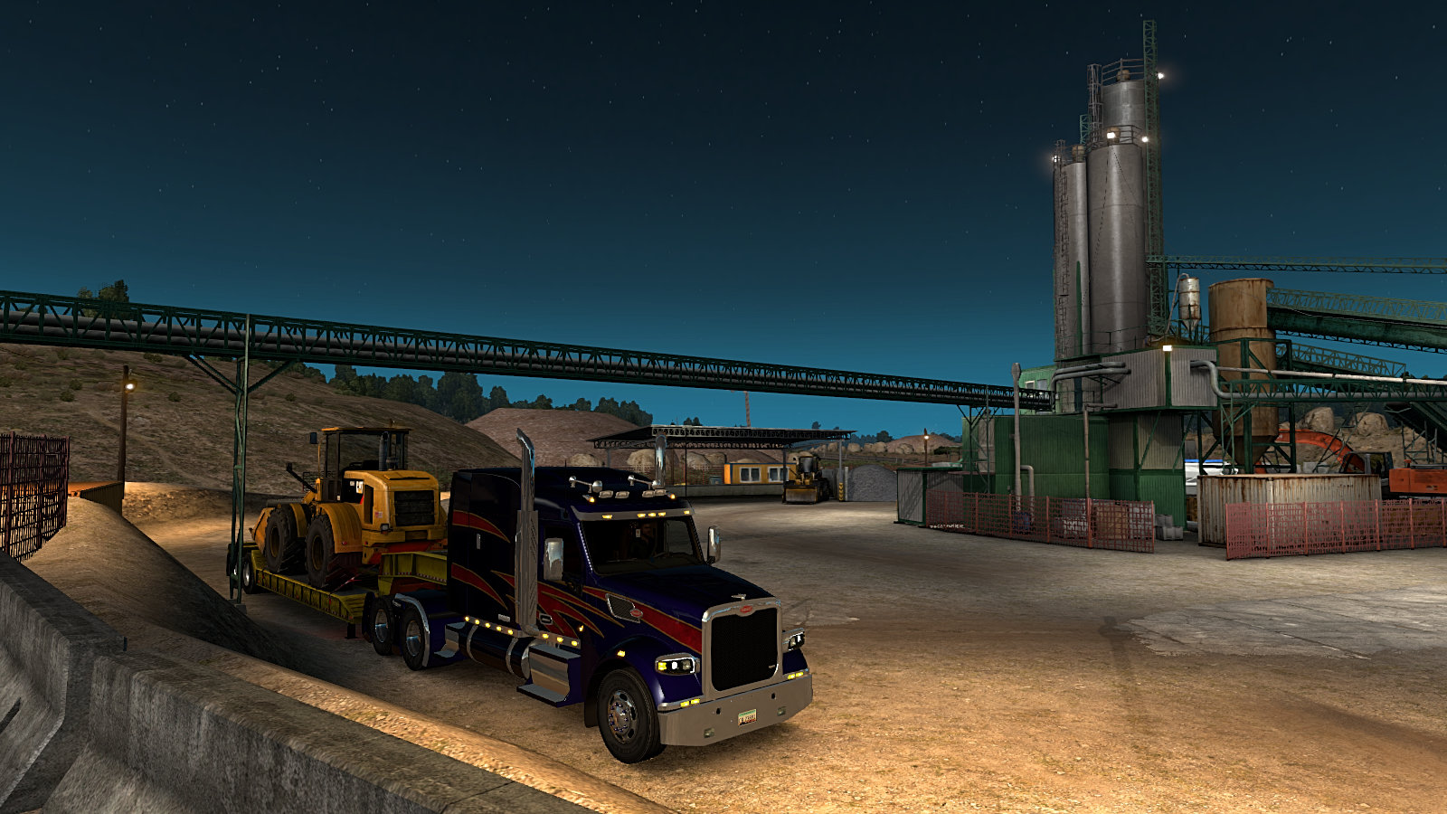 Now all that driving has come at a price. I injured my left knee in a fall quite a few years ago and it took another bash when our vacuum cleaner decided to trip me a couple of years ago. Driving Silver Dollar and Midnight Cruiser with their manual gearboxes has stirred up my knee and made it very sore. So I was glad to swap back to Purple Rain II with her automatic gearbox for the last few deliveries and rest my clutch pedal leg! I’m taking suitable arthritis and pain-killing medication to get things back under control. But it goes to show the hazards involved in computer gaming – which often show up as tendonitis in the hands. It’s ‘fun’ getting a sports injury sitting in your chair 😉 Fortunately, the real world car I bought in April to replace our old one is also an automatic – was that a prescient decision? Anyway, here’s Purple Rain II doing my final delivery of the Event – returning a large digger to the company that leased it to the highways agency.