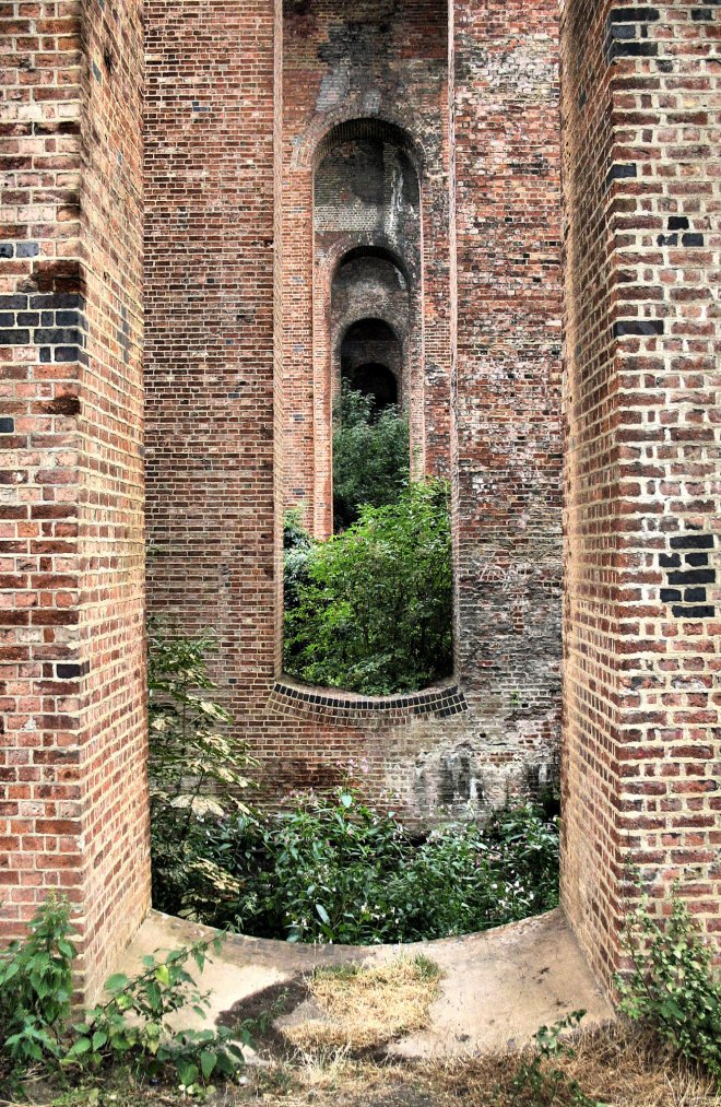 Thanks Colline. This is Dollis Viaduct which carries the Mill Hill East Branch of the Northern Line across the valley of Dollis Brook. The brook is just visible through the Himalayan Balsam in the foreground. The shot was taken from Dollis Road. You should be able to find it on Google Maps in North London.