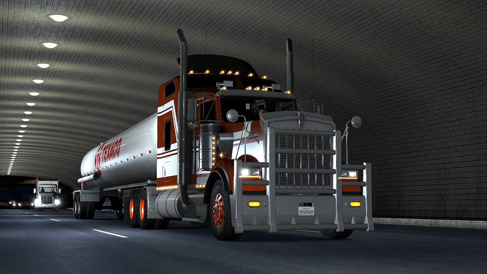 Much of my driving this week has been in American Truck and I’ve been battling the curse of New Mexico. What curse you may ask? In New Mexico I find that there is an added risk that coaches, trucks and the ai in general will drive into you. But I also note that it seems more likely to affect some trucks than others. I’ve been driving the Kenworth W900B which is one of the GTM mods and it’s a big truck. In fact I have to say it feels bigger than the W900L that SCS provide as standard in the game. Now that’s a bit strange as the W900L should be longer with a lower hood than the W900B (unless I’ve missed something somewhere). But the W900B seems to be very wide – so wide in fact, that I was driving down a curving road without a trailer in Clovis and a passing coach clipped my rear fender despite me being on my side of the lane lines! I wonder if there’s a bounding box issue there? But I have also not experienced similar issues with the in-game W900L. If you look at images the W900B looks a very big truck…
