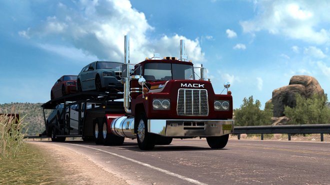 Anyway – time for a change. We all know the wonderful Freightliner FLB that is currently in the careful charge of modder Harven. Harven has now released the Mack R600 truck on the Steam workshop. I had to try that one 🙂 Initial impressions are good although the set-up of seating and steering position seems to be a bit ‘clunky’ currently. The finish of the truck’s appearance is great…