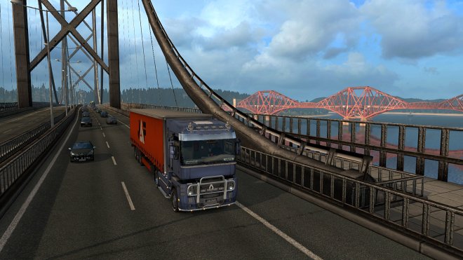Having just had an excellent holiday in Scotland I guess taking a run up to the land of my Father in Euro Truck was inevitable. Here’s Corbieres heading south across the Firth of Forth with a load of wooden beams from Aberdeen to Edinburgh.