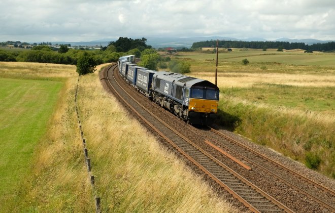 And what would trainspotting be without a freight service? This is the 4A13 Grangemouth to Aberdeen Craiginches intermodal service with 66433 in charge…
