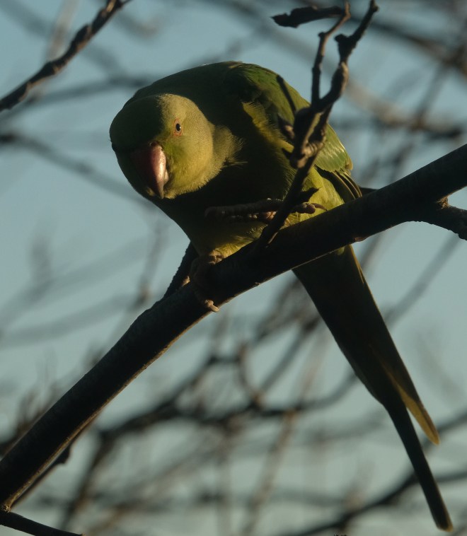 Starlings are on the RSPB’s Red list as a species in severe decline. Ring-necked Parakeets are a naturalised species expanding their range and this is the first time they’ve actually visited the feeders in my garden.