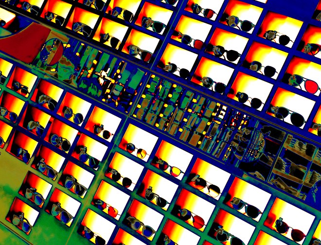 Store display in Selfridges, London. Effect achieved by abusing the curves function in photo processing to give a faux-solarised appearance to the image.