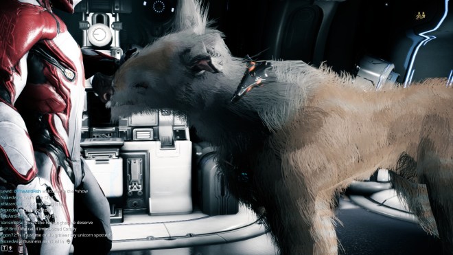 An early quest (group of missions) will require you to obtain a Kubrow’s egg and hatch one. What is a Kubrow? Think Klingon Targ and you’ll be close. This will be a companion to help in your battles (although you can also get robotic companions too). Mine is called Leena. Here we are on ship…