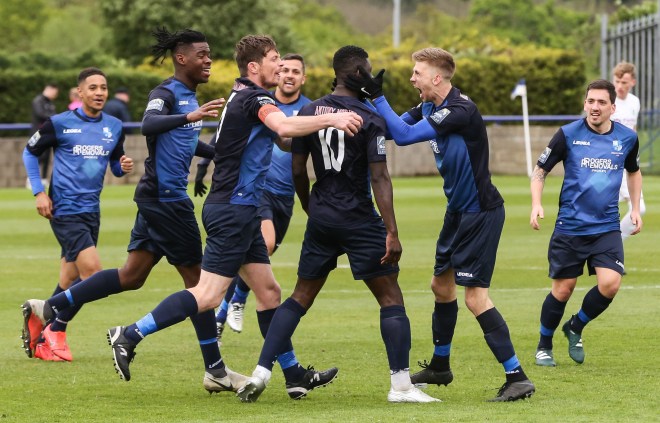 Last Saturday we gathered at the Maurice Rebak stadium more in hope than expectation. The weather was grey – one of those days when it thinks it wants to rain but can’t decide to do so. The wind was gusting strongly from the southwest as storm Hannah made its way up the west coast. The game got off to a good start for Wingate with Tony Mendy scoring on 14 minutes and doubling our lead on the stroke of half-time. This lad’s getting used to celebrations…