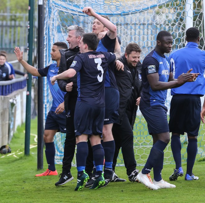 …It no longer mattered that Whitehawk beat Corinthian Casuals 4-0 – they were down and we were staying up. Cue the end of game celebrations 🙂