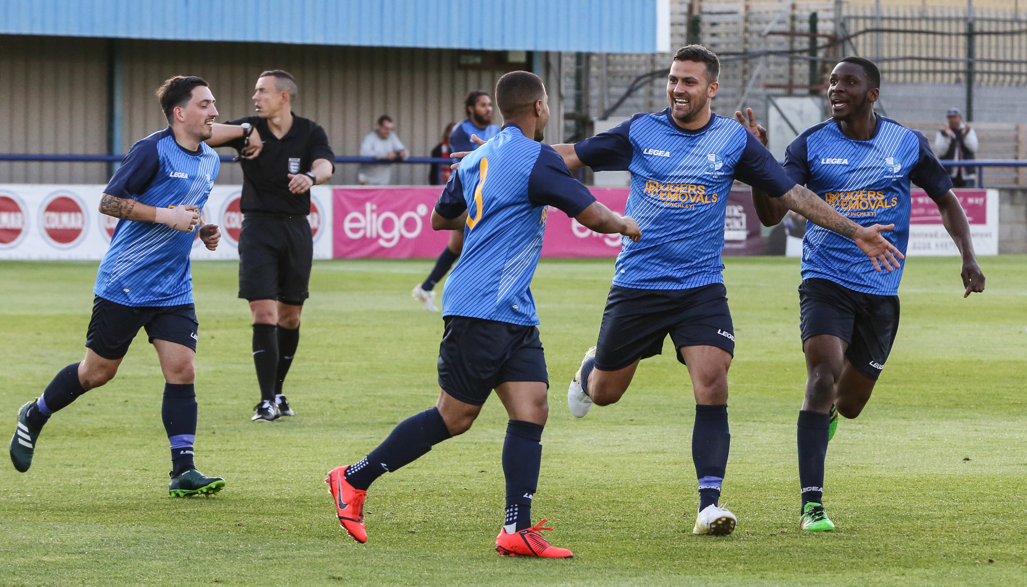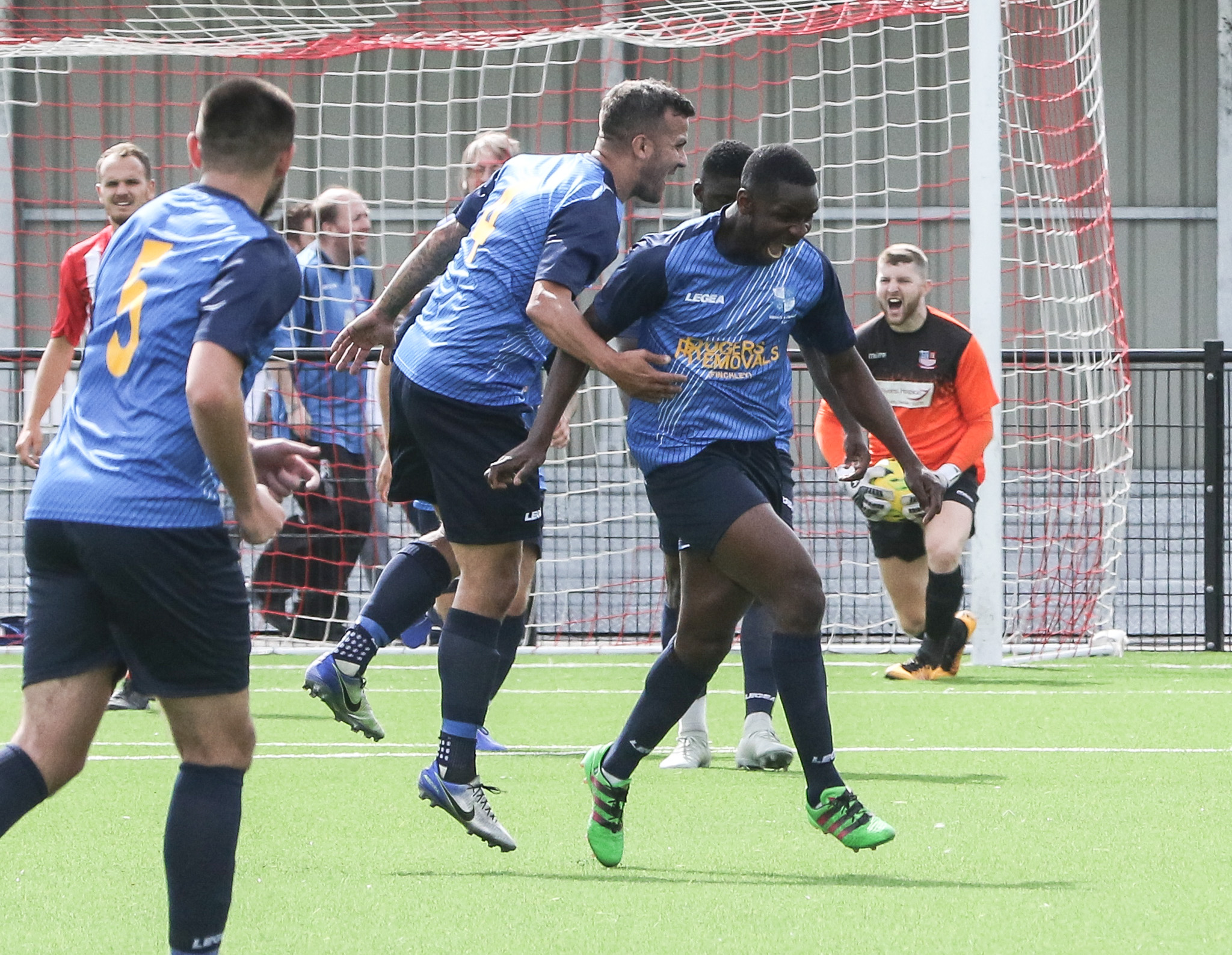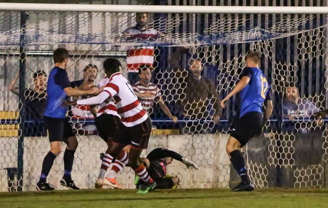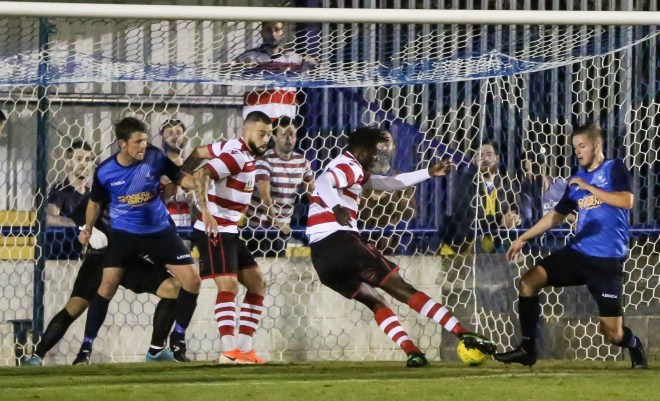 On Tuesday evening we were at home to Kingstonian. On the 3rd minute it was Tee-Jay’s turn to strike a screamer to give us the lead – something that I was not in a position to get anything of although I did get a photo of Ahmet and Olu running to congratulate him!..