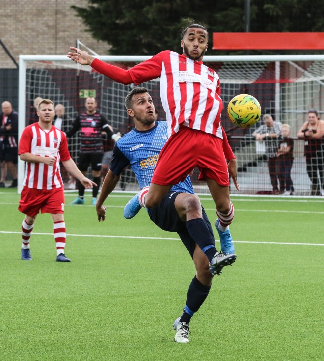 Our first match was away to Bowers & Pitsea who are newly promoted to the division. The wind contrived to make it a dour match that was brightened by a beautiful 25yd strike from new player Olu – scoring a goal on his debut and one of that quality saw a deserved celebration…