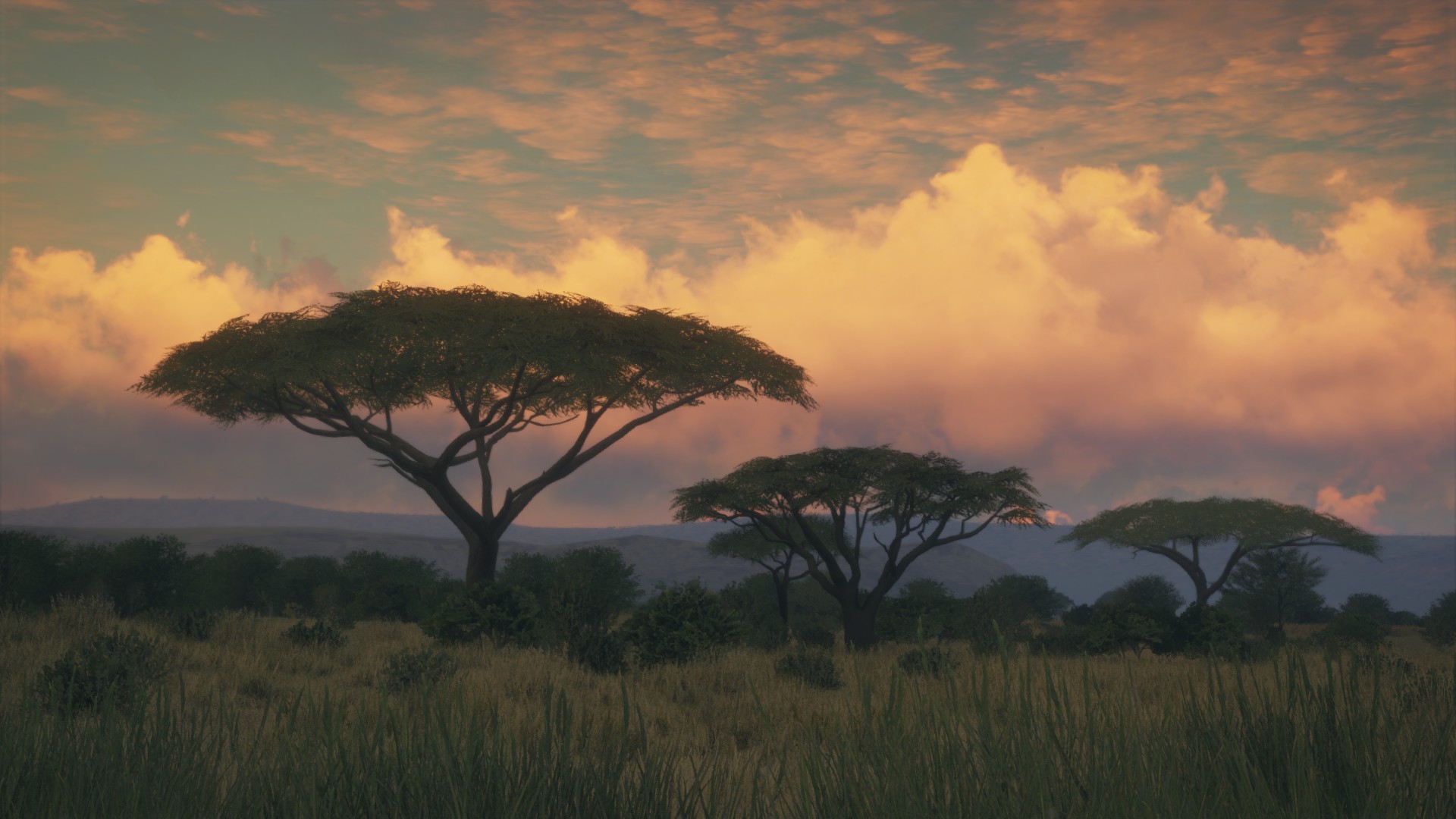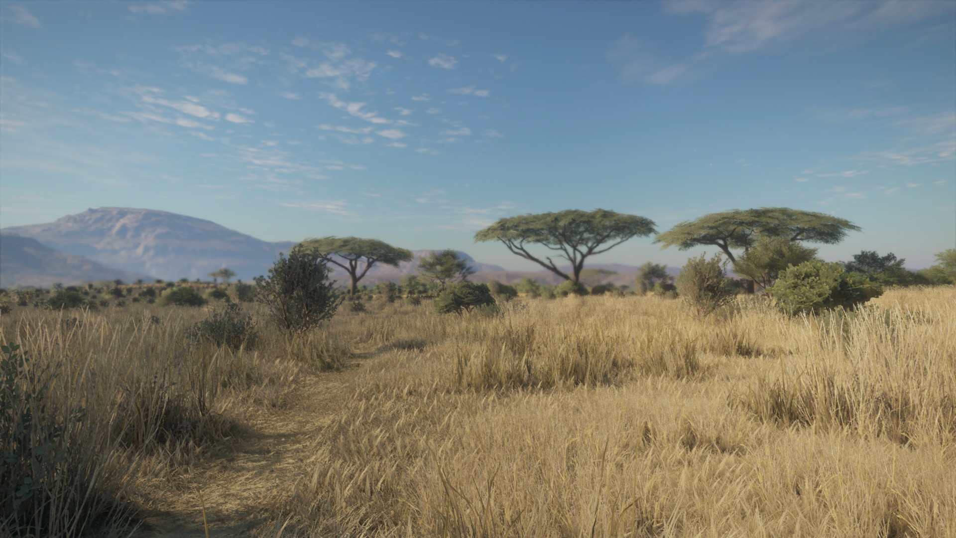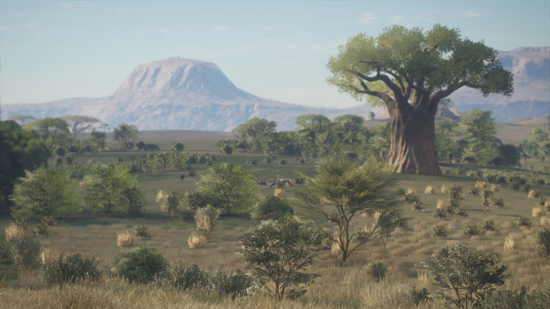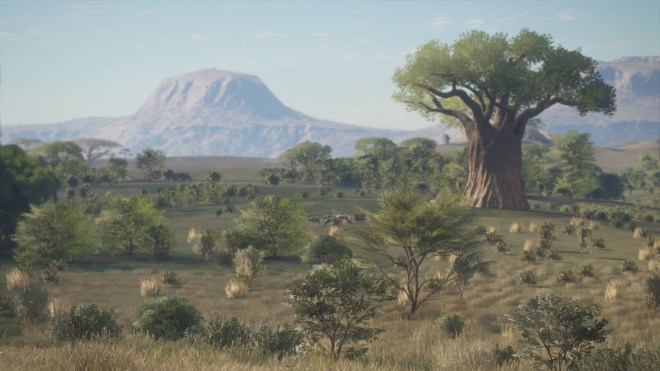 In Hirschfelden and Layton Lakes you can get killed. But, this is usually a consequence of getting inadvertently caught in the middle of a herd of Deer that are panicking. The Bears in Layton Lakes do not pose much of a threat and usually run away as you approach. In fact, the Wild Boar in Hirschfelden are probably the most dangerous animals out there but again, only if you get real close to a big family group. Vurhonga Savanna is a totally different ball game. Here you will find one badass carnivore in the shape of the Lion. Time to tell the story. I took this photo of the savanna just for you…