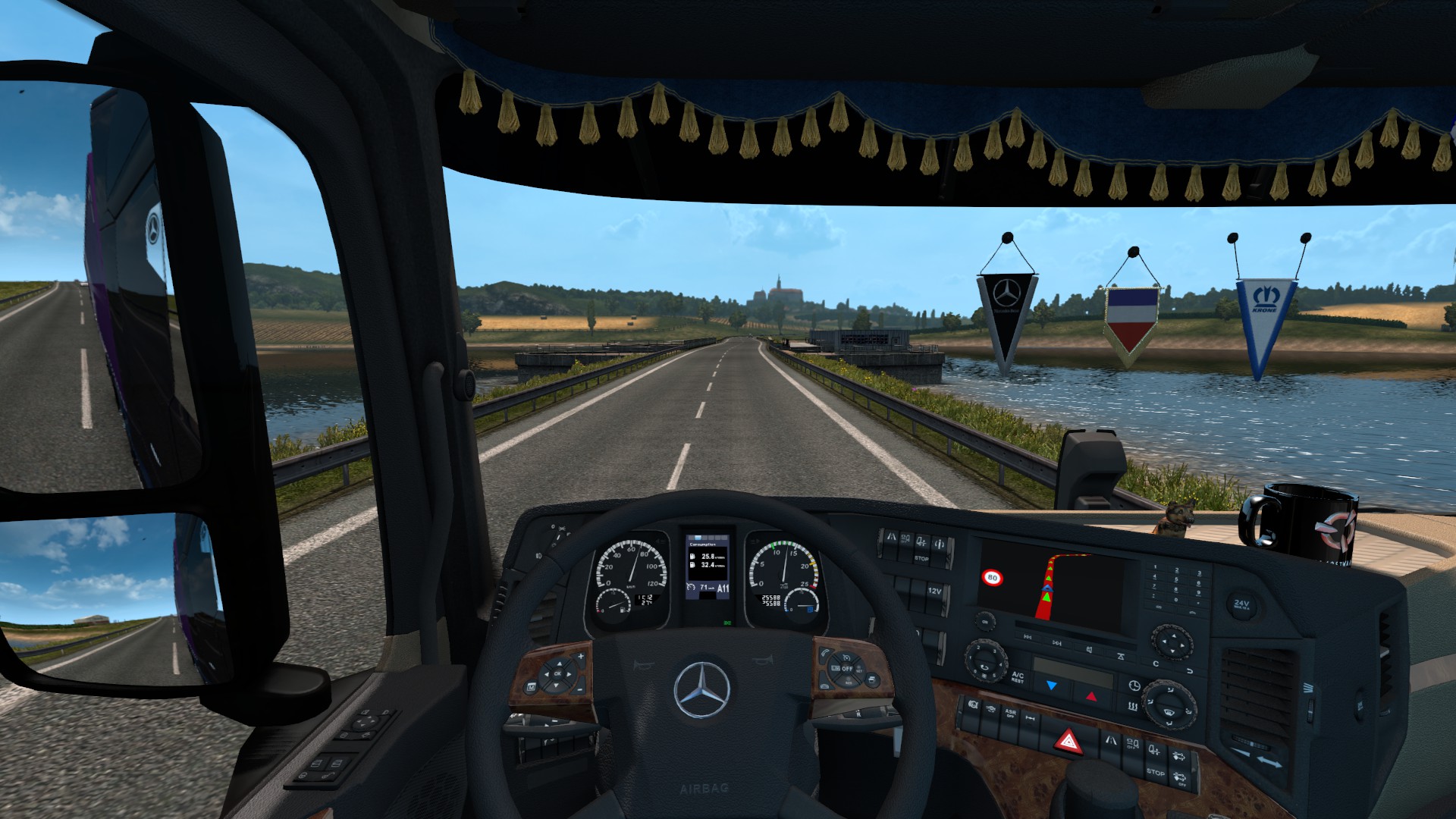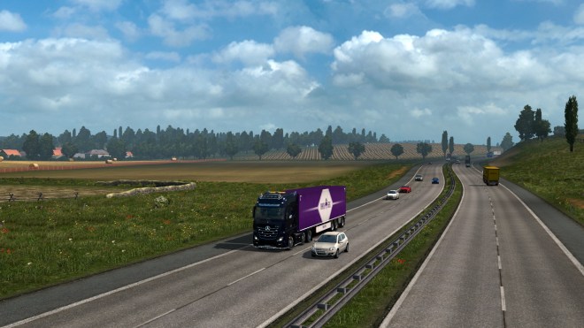 A couple of weeks back Euro Truck Simulator 2 was on sale – it happens for both titles 3 or 4 times each year and you can then get the games for £3.74p each. Anyway, I decided to flag up the sale to my Twitter community – which mainly comprises friends from football. Over the last couple of years chatting with the fans I’d found some who were at least vaguely interested in the games after seeing my tweeted screenshots. I’m pleased to report that my tweet advertising the sale resulted in two of our teenage fans trying the demo (which is how I learnt of it’s existence) and then purchasing the game. I did have a minor concern that their parents might not be happy with me introducing them to another computer game when they’re coming up to their GCSE’s. Last Saturday when they were dropped off to catch the coach to our away match I took the opportunity to approach their Mother and apologise. She was having none of it – she thanked me for getting them involved as it’s a relaxing game and just what they needed at a stressful time! In fact, she reckons that she’s going to have a go at the game too! Result!!! 🙂