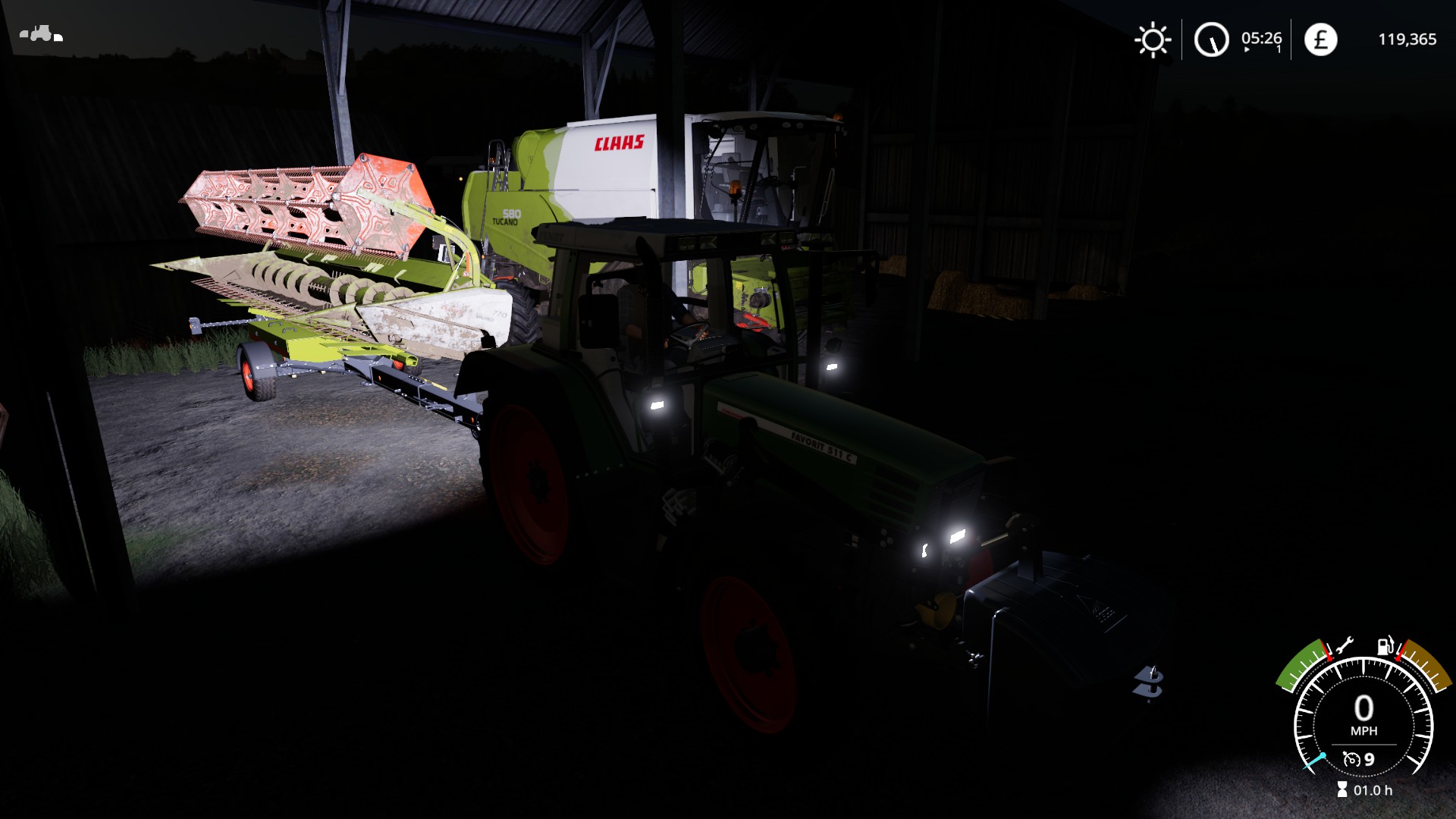 Next morning and sadly the harvesting job has gone 😦 So it’s time for some routine jobs about our own farm. First task is to take the harvester to the shop for maintenance…